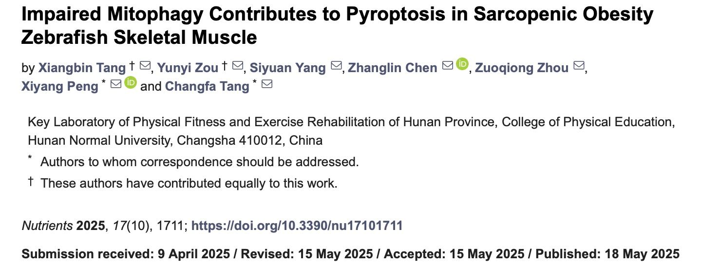 Research Highlight: Impaired Mitophagy Contributes to Pyroptosis in Sarcopenic Obesity Zebrafish Skeletal Muscle
