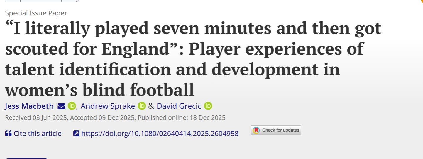 Research Highlight: “Seven Minutes to England”: How Women’s Blind Football Is Fast-Tracking Talent