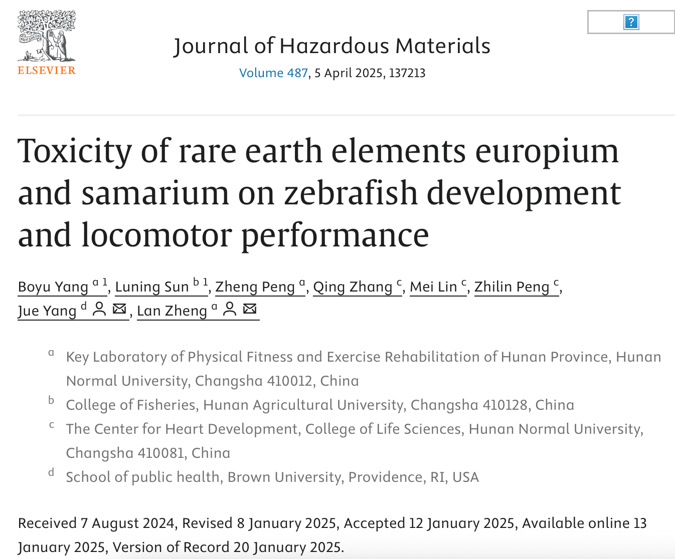 Research Highlight: Toxicity of Rare Earth Elements Europium and Samarium on Zebrafish Development and Locomotor Performance