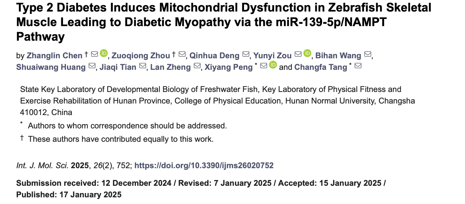 Research Highlight: Type 2 Diabetes Induces Mitochondrial Dysfunction in Zebrafish Skeletal Muscle Leading to Diabetic Myopathy via the miR-139-5p/NAMPT Pathway